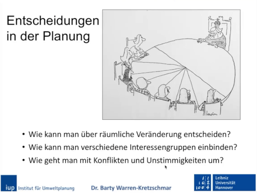 In Welzow soll eine Zukunftsvision entwickelt werden. Wie entscheidet man, wie diese Zukunft aussehen soll. Wie können verschiedene Interessengruppen in diesen Entscheidungsprozess eingebunden werden? Dr. Bartlett Warren-Kretschmar von der Leibniz-Universität Hannover erklärt, warum Geodesign in diesem Entscheidungsprozess helfen kann.